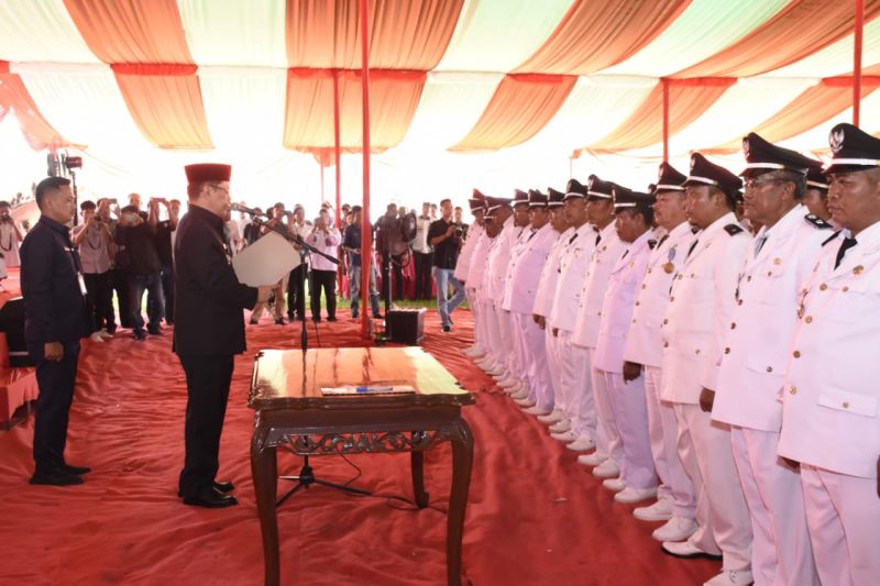 Pengukuhan dan Penyerahan Surat Keputusan (SK) perpanjangan masa jabatan Kepalo Tiyuh dilaksanakan di Lapangan Pulung Kencana, Kec. Tulang Bawang Tengah. Kamis (20/06/2024).
