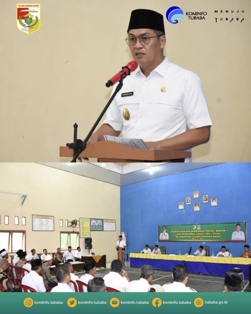 Tubaba, Harian Sultan.com – Sekretaris Daerah (Sekda) Kabupaten Tulangbawang Barat (Tubaba) Ir. Novriwan Jaya, S.P., mengukuhkan sekaligus membuka Kegiatan Bimbingan Teknis (Bimtek) Pengurus Unit Pengumpul Zakat (UPZ) Kecamatan Tulang Bawang Tengah (TBT), Tulang Bawang Udik (TBU) dan Tumijajar. Di Balai Tiyuh Mulya Jaya, Kecamatan TBT. Kamis (27/06/2024).