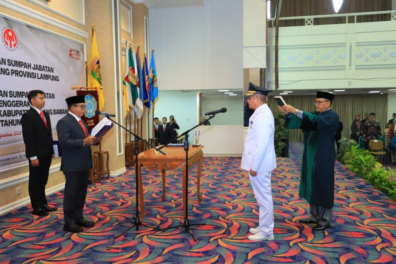 Bandar Lampung, Harian Sultan.com – Pelantikan dan Pengambilan sumpah jabatan Penjabat Bupati Tulang Bawang Provinsi Lampung dan pelantikan Penjabat Ketua TP PKK & Dekranasda Kabupaten Tulang Bawang telah selesai dilaksanakan siang tadi, di Balai Keratun Lantai 3 Kantor Gubernur Lampung, Sabtu (10/8/2024).
