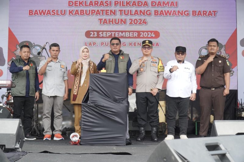 Tubaba. Harian Sultan.com – Badan Pengawas Pemilihan Umum (Bawaslu) Kabupaten Tulang Bawang Barat (Tubaba) bersama Pemerintah Kabupaten setempat menggelar Deklarasi Pilkada Damai pada Pemilihan Serentak tahun 2024 di Kabupaten Tubaba. Senin (23/09/2024).
