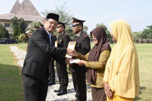 Penghargaan tersebut diserahkan saat upacara peringatan ke-79 Hari Pahlawan, yang berlangsung di Halaman Kantor Pemda Kabupaten setempat, pada Senin (11/11/2024).