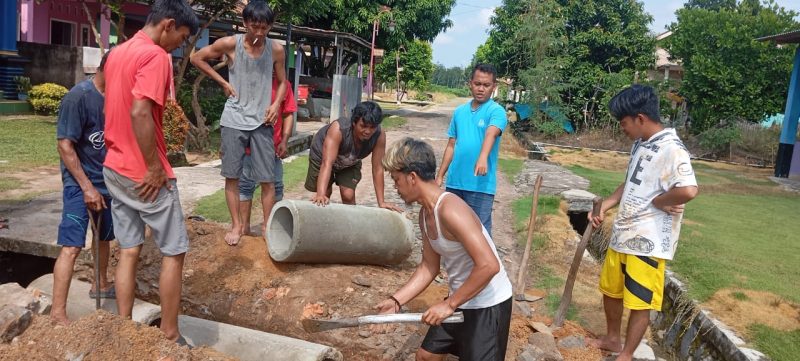 Tulang Bawang, Hariansultan.com – Tim Tekab 308 Polres Tulang Bawang, Polda Lampung, Bersama Kepala kampung Abdurohim dan masyrakat kampung Tiuh Tohou turut serta dalam kegiatan bergotong- royong. Kampung Tiuh Tohou, Kecamatan Menggala, Kabupaten Tulang Bawang, provinsi Lampung, Pada Hari Minggu (27/04/2025).