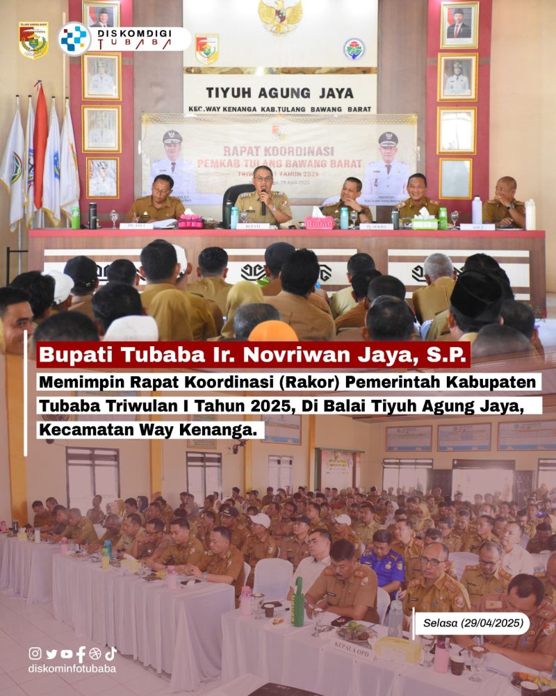 Tubaba, Hariansultan.com – Pemerintah Kabupaten Tulang Bawang Barat (Tubaba), menggelar Rapat Koordinasi (Rakor) Tingkat Kabupaten Tulang Bawang Barat Triuwalan I Tahun 2025. Di TIyuh Agung Jaya Kecamatan Way Kenanga Pada. Senin (29/04/2025).