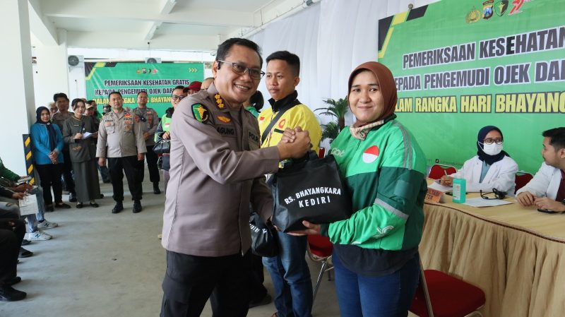 Hari Bhayangkara ke-79, RS Bhayangkara Kediri Biddokkes Polda Jatim Gelar Pemeriksaan Kesehatan Gratis kepada Pengemudi Ojek Online