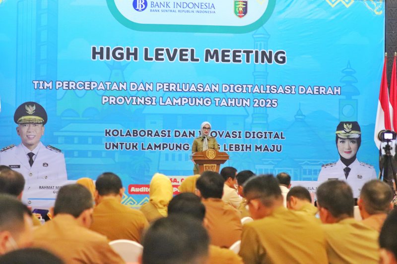 Bandar Lampung, Hariansultan.com – Wakil Gubernur Jihan Nurlela membuka acara High Level Meeting Tim Percepatan dan Perluasan Digitalisasi Daerah (TP2DD) Provinsi Lampung Tahun 2025, di Auditorium Kantor Perwakilan Bank Indonesia Provinsi Lampung, Selasa (08/07/2025).
