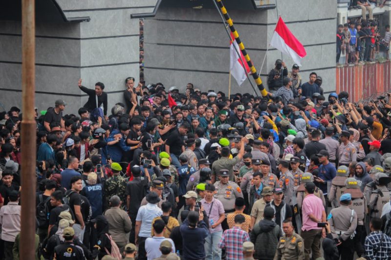 Bandar Lampung, Hariansultan.com – Aksi unjuk rasa yang digelar oleh berbagai elemen mahasiswa di depan Gerbang Pintu Masuk Komplek Kantor Gubernur/DPRD Provinsi Lampung, Senin (01/09/2025), berlangsung kondusif dan berakhir dengan damai.